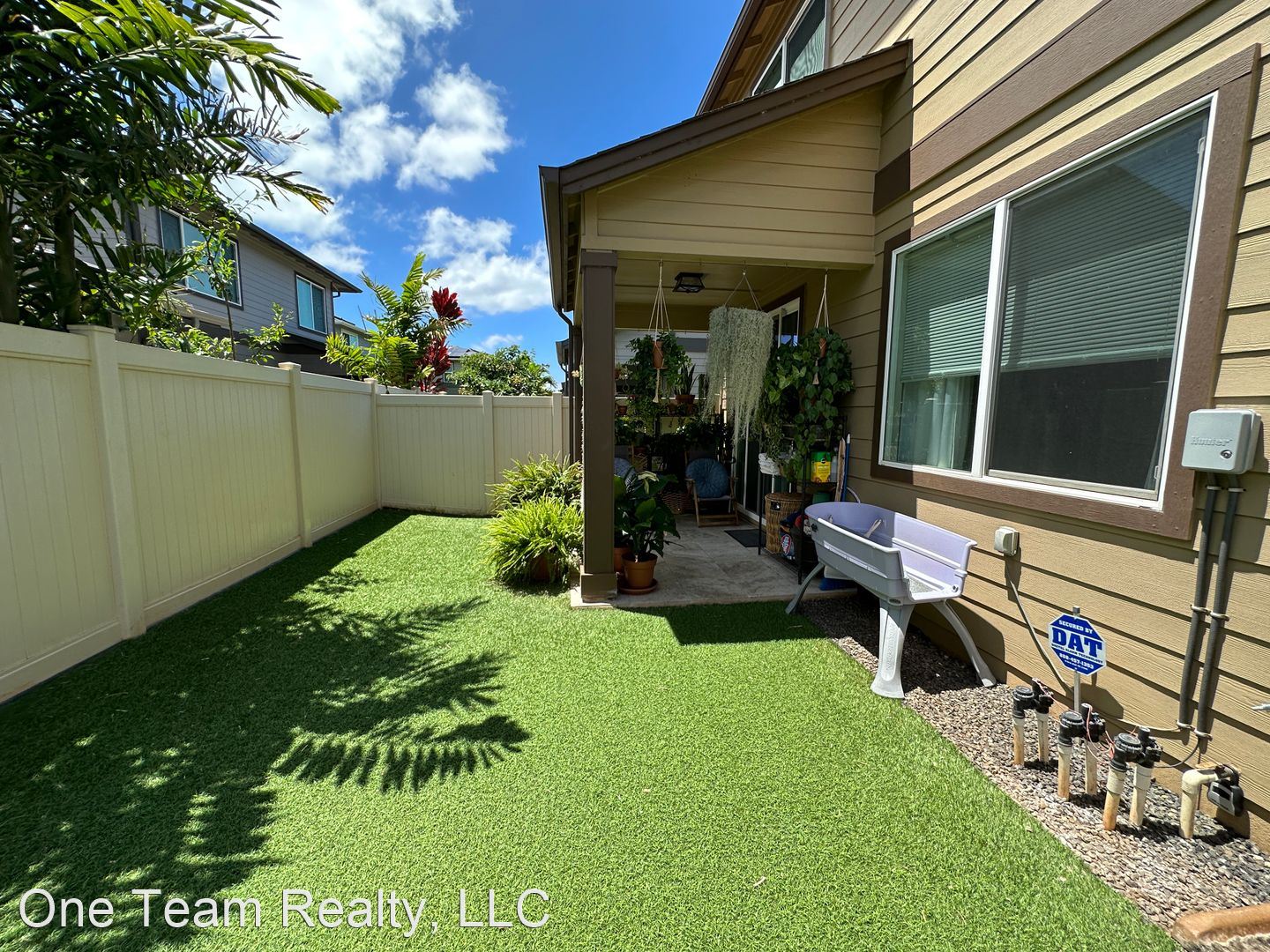 Fully fenced backyard with artificial turf is low maintenance & perfect for entertaining or relaxing. Pets welcome! Water/sewer/trash included with rent.