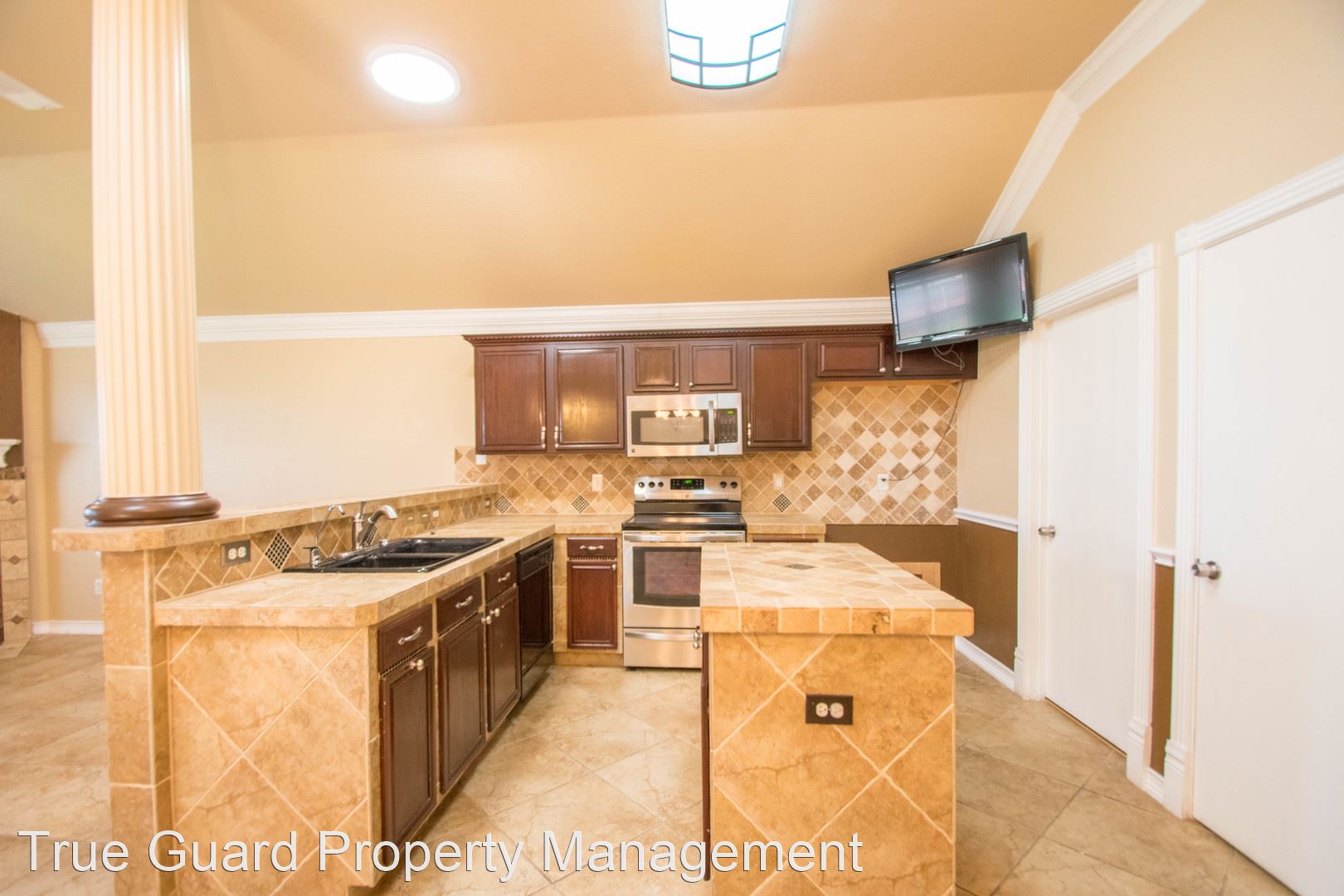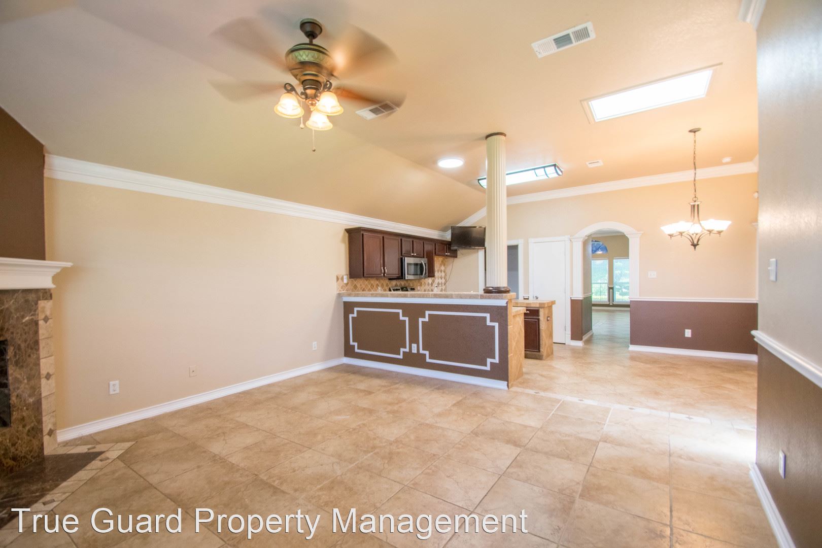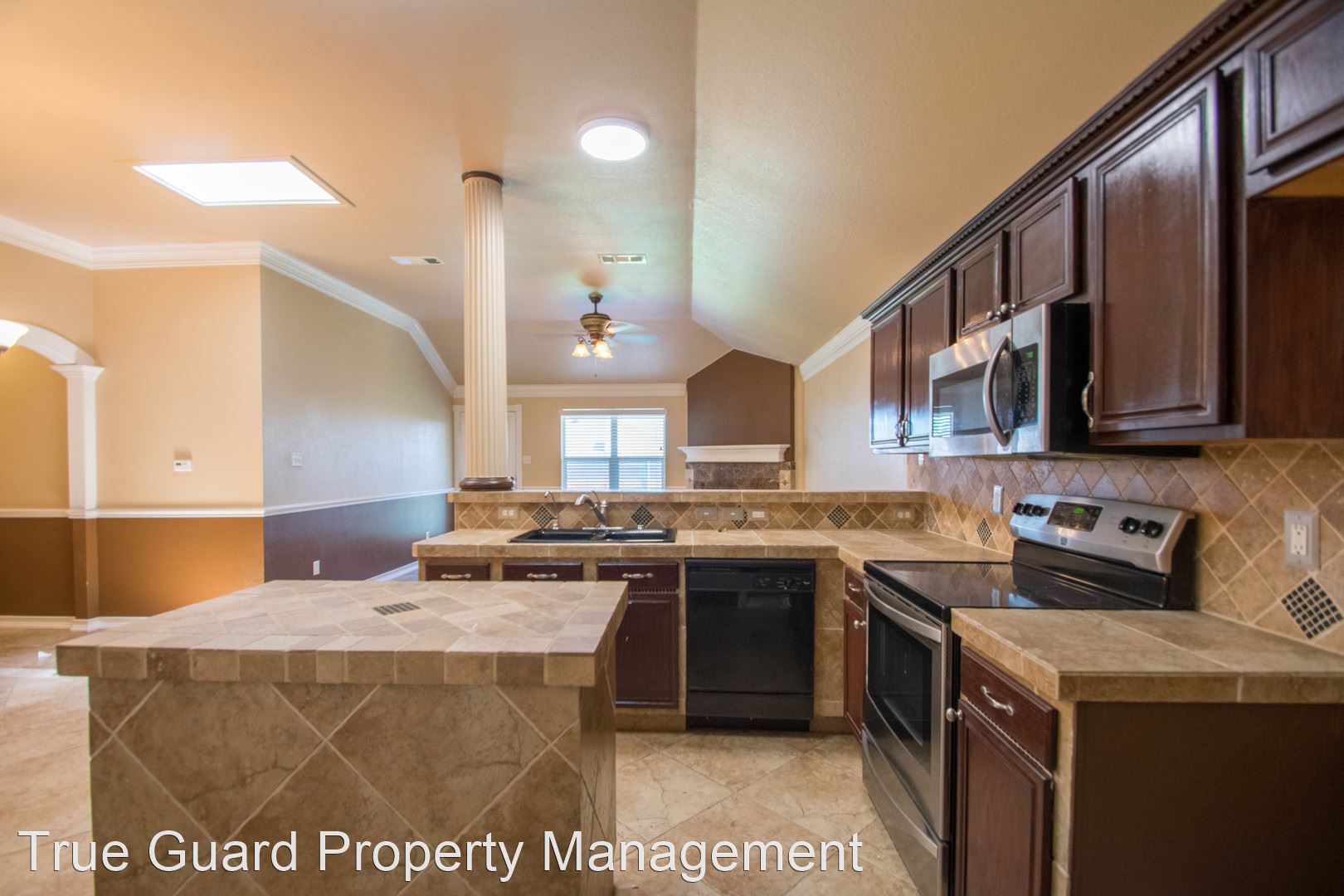 Classic Stone 4-Bedroom in Arlington - Formal dining and living area upon entry. Large second living area with fireplace. Eat-in kitchen, lots of cabinet and counter space. Large pantry. Large primary bedroom with separate shower and tub, dual sinks. Large back yard with covered patio. 2-car garage. Close to schools, highways and shopping.